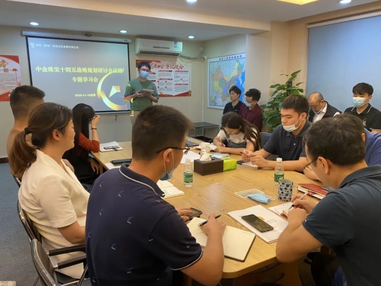 11月18日,央创(深圳)时尚文化发展有限公司党支部组织召开中金珠宝“十四五”发展战略研讨会精神专题学习会,动员全体干部员工以中金珠宝“十四五”发展战略研讨会精神学习宣贯为契机,牢记“做社会主义时尚产业先行示范的引领者和推动者”使命,把握中金珠宝创新板块先行先试的优势和机会,认真谋划公司“十四五”发展规划,为珠宝公司建成具有国际影响力的黄金珠宝行业领军企业作出新的更大贡献。